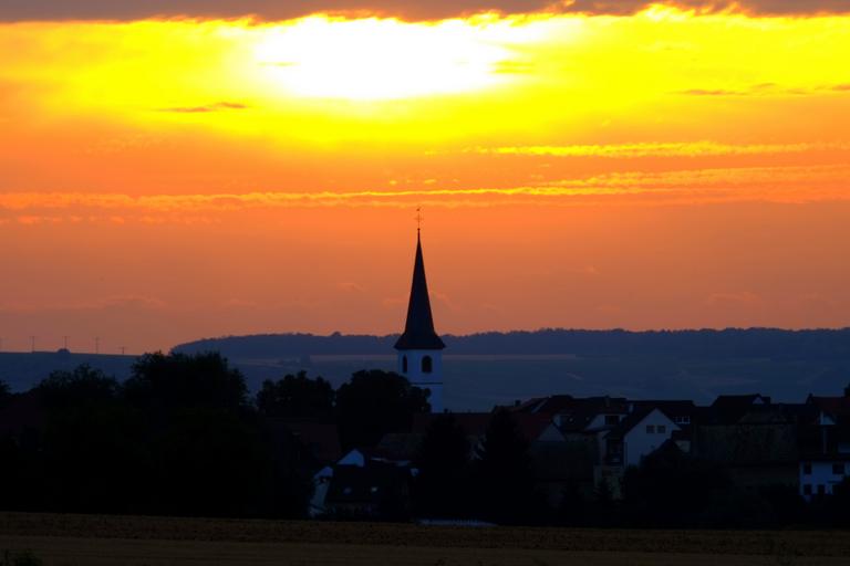 Keywords: twilight evening sky sunset sky afterglow nature red evening abendstimmung dusk evening sun golden mood atmosphere romantic rest light glow heat church building village lichtspiel