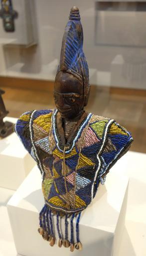 | Keywords: Twin Memorial Figure (ere Ibeji) with Beaded Garment (ewu ileke), Nigeria, Yoruba people, 19th-20th century, wood, beads, cowrie shells, paint, fabric, leather - Chazen Museum of Art - DSC01831.JPG en Exhibit in the Chazen Museum of Art University of Wisconsin-Madison Madison Wisconsin USA This artwork is old enough so that it is in the public domain Photography was permitted in the museum without restriction 2013-07-21 12 57 38 own Daderot cc-zero Art of Africa in the Chazen Museum of Art Uploaded with UploadWizard Ere ibeji |