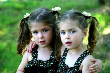 Keywords: twin sisters love girls blue eyes beauty innocence portrait double