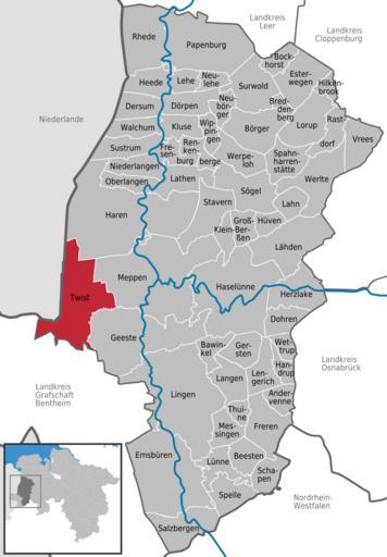 | Keywords: Twist in EL.svg DeLocMaps Twist Landkreis Emsland District of Emsland Emsland L'arrondissement du Pays de l'Ems Arrondissement du Pays de l'Ems Niedersachsen Basse-Saxe Lower Saxony TUBS/Translation own Adobe Illustrator based on File Lower Saxony location map svg NordNordWest http //www geodaten niedersachsen de/master/C17415881_N17416128_L20_D0_I15258844 htm Niedersachsen Viewer http //www geomdk niedersachsen de/data/lgn/info/dgm5_lk454 pdf Koordinierungsstelle GDI-NI beim Landesbetrieb Landesvermessung und Geobasisinformation Niedersachsen DGM 5 Verfügbarkeit Landkreis/Stadt Landkreis Emsland File Locator map EL in Lower Saxony svg TUBS 2009-07-04 Hagar66 based on work of TUBS <gallery> file Municipalities in EL svg </gallery> TUBS GFDL cc-by-3 0 2 5 2 0 1 0 cc-by-sa-3 0 2 5 2 0 1 0 TUBS/Credits Locator maps of municipalities in Landkreis Emsland Maps and Charts of Twist Emsland |