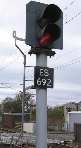 Keywords: Two-aspect-signal ES692.jpg Network Rail two-aspect railway signal ES692 guarding a level crossing Двузначный железнодо ожный сигнал в Англии установленный пе ед пе еездом 2004-10-31 English Wikipedia Andrew Bell en User BesigedB BesigedB Railway signals in the United Kingdom Vertical color light signals