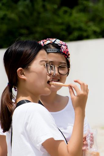 Keywords: two children born team write eat throw the dish asia street food hungry snack