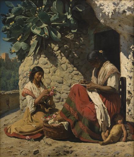 | Keywords: Two gypsy women outside their home (1878 painting).jpg  Artwork title da To sigøjnerkvinder uden for deres bolig Two Gypsy women outside their cottage Spain 1878 oil canvas cm 156 182 Statens Museum for Kunst Copenhagen http //www smk dk/en/explore-the-art/the-royal-collections/work-in-artsdatabase/view/index/Start/kunstvaerk/to-sigoejnerkvinder-uden-for-deres-bolig/ Statens Museum for Kunst object history credit line accession number KMS1121 Statens Museum for Kunst PD-old-100 Paintings by Peder Severin Krøyer Paintings in Statens Museum for Kunst Roma people in art Portrait paintings of women Females watching in art 1878 paintings |