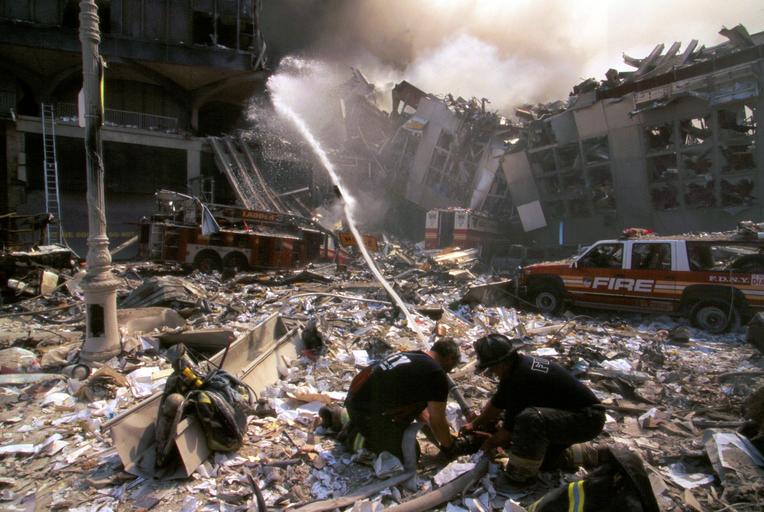 | Keywords: outdoor Two New York City fire fighters spraying water on smoldering ruins following September 11th terrorist attack on World Trade Center, New York City. Sept. 11, 2001. Image. Retrieved from the Library of Congress, www.loc.gov/pictures/item/2002719367/. (Accessed September 03, 2016.)  Call Number: LC-A05- E14 [item] [P&amp;P]  Forms part of: Collection of unattributed photographs ...  The 250 color slides made at the World Trade Towers in New York City on September 11, 2001, received from the New York District Attorney's office from an unattributed photographer, are in the public domain. Privacy and publicity rights may apply.   These slides were received from the New York District Attorney's office with the photographer relinquishing any and all copyright and right of attribution. Therefore, the photographer's name will not be associated with these photographs.  Note – This image has been digitally adjusted for one or more of the following: - fade correction, - color, contrast, and/or saturation enhancement - selected spot and/or scratch removal - cropped for composition and/or to accentuate subject matter - straighten image Two New York City fire fighters spraying water on smoldering ruins following September 11th terrorist attack on World Trade Center, New York City. Sept. 11, 2001. Image. Retrieved from the Library of Congress, www.loc.gov/pictures/item/2002719367/. (Accessed September 03, 2016.)  Call Number: LC-A05- E14 [item] [P&P]  Forms part of: Collection of unattributed photographs ...  The 250 color slides made at the World Trade Towers in New York City on September 11, 2001, received from the New York District Attorney's office from an unattributed photographer, are in the public domain. Privacy and publicity rights may apply.   These slides were received from the New York District Attorney's office with the photographer relinquishing any and all copyright and right of attribution. Therefore, the photographer's name will not be associated with these photographs.  Note – This image has been digitally adjusted for one or more of the following: - fade correction, - color, contrast, and/or saturation enhancement - selected spot and/or scratch removal - cropped for composition and/or to accentuate subject matter - straighten image  <em>Two New York City fire fighters spraying water on smoldering ruins following September 11th terrorist attack on World Trade Center, New York City</em>. Sept. 11, 2001. Image. Retrieved from the Library of Congress, <a href="http://www.loc.gov/pictures/item/2002719367/" rel="nofollow">www.loc.gov/pictures/item/2002719367/</a>. (Accessed September 03, 2016.)