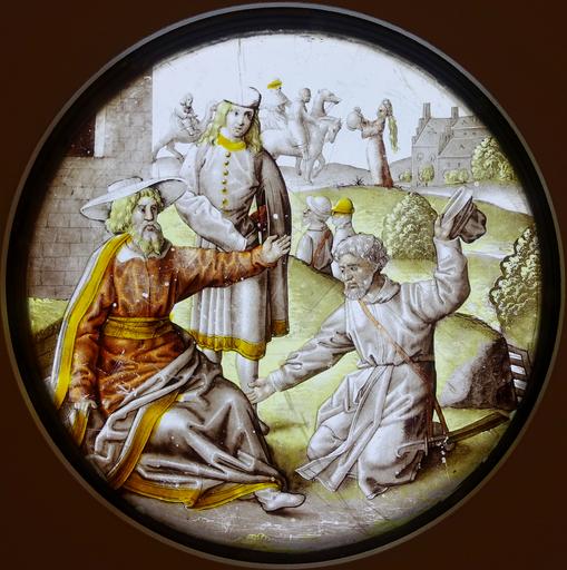 View Original: | Two Roundels with Scenes from the Life of Abraham, 1. Abraham sends his Servant to find a Wife for Isaac, Southern Netherlands, c. 1500, stained glass - Museum Schnütgen - Cologne, Germany - DSC09860.jpg (3244x3263) | |||