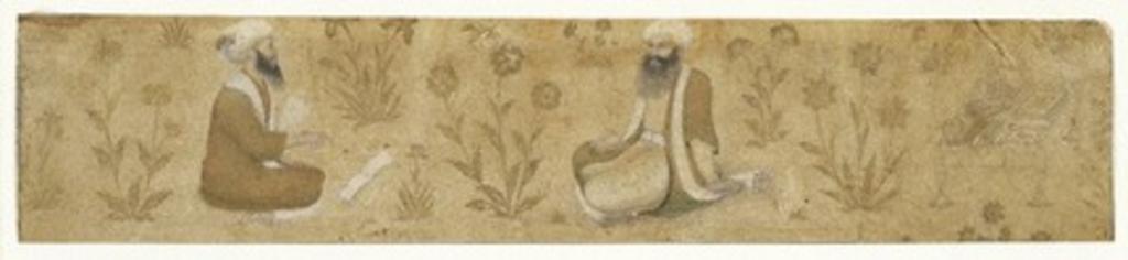 Keywords: Two Scribes Seated with Books and a Writing Table Fragment of a decorative margin Northern India.jpg These exquisitely painted figures once appeared on the margins of a painting in an album made for the emperor Shah Jahan the ruler who built the Taj Mahal Illuminated borders were frequently used in royal albums where they served to frame and protect a wide array of cherished paintings and calligraphies The two seated men in this margin are either scribes or librarians the man on the left with an open book in front of him is reciting to the man seated in the center At the far right is a low desk with a cup pens and decorated manuscript pages We do not know the location of the painting that this margin once framed Perhaps it was damaged and only this element could be salvaged or perhaps it was taken apart and sold in several pieces circa 1640 1650 Opaque watercolor and gold on paper Overall 2 x 9 5/8in 5 1 x 24 4cm Brooklyn Museum object history credit line Gift of the Ernest Erickson Foundation Inc accession number 86 227 153 http //www brooklynmuseum org/opencollection/labs/splitsecond/painting php id 138 PD-Art Uploaded with UploadWizard 17th-century Mughal miniatures Small images 1640s paintings from India |