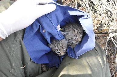 | Keywords: bobcat wildlife carnivore animals animalsandinsects Springtime is baby time! Last week our wildlife team ear-tagged another litter of bobcat kittens. The kittens are B328, B329, and B330 because they are the 328th, 329th, and 330th bobcats we've tracked during our study. We've been tracking their mom, B295, since January 2012 and this is the first litter we're aware of since then. Two of the three siblings. Biologists use pillowcases when they're working with kittens because it's a dark and breathable space to keep them safe until they're returned to the den (usually about 45 minutes). Springtime is baby time! Last week our wildlife team ear-tagged another litter of bobcat kittens. The kittens are B328, B329, and B330 because they are the 328th, 329th, and 330th bobcats we've tracked during our study. We've been tracking their mom, B295, since January 2012 and this is the first litter we're aware of since then. Two of the three siblings. Biologists use pillowcases when they're working with kittens because it's a dark and breathable space to keep them safe until they're returned to the den (usually about 45 minutes). |