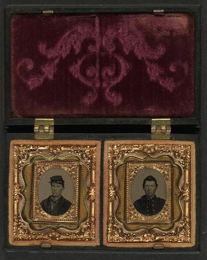 Keywords: library of congress libraryofcongress dc:identifier=http://hdl.loc.gov/loc.pnp/ppmsca.27423 dc:identifier=httphdllocgovlocpnpppmsca27423 xmlns:dc=http://purl.org/dc/elements/1.1/ xmlns:dc=httppurlorgdcelements11 u.s. civil war uscivilwar american civil war americancivilwar the civil war thecivilwar civil war civilwar war between the states warbetweenthestates united states of america unitedstatesofamerica u.s.a. usa the union theunion union the north thenorth yankee yankees soldier soldiers people groupshot indoor [Two unidentified soldiers in Union uniforms] [between 1861 and 1865] 2 photographs in 1 case : gem tintype, hand-colored ; 7.5 x 11.8 cm (case) Notes: Title devised by Library staff. Case: Berg, no. 1-165. Gift; Tom Liljenquist; 2010; (DLC/PP-2010:105). Subjects: United States.--Army.--People--1860-1870. Soldiers--Union--1860-1870. Military uniforms--Union--1860-1870. United States--History--Civil War, 1861-1865--Military personnel--Union. Format: Portrait photographs--1860-1870. Tintypes--Hand-colored--1860-1870. Rights Info: No known restrictions on publication. Repository: Library of Congress, Prints and Photographs Division, Washington, D.C. 20540 USA, hdl.loc.gov/loc.pnp/pp.print Part Of: Ambrotype/Tintype filing series (Library of Congress) (DLC) 2010650518 Liljenquist Family collection (Library of Congress) (DLC) 2010650519 More information about this collection is available at hdl.loc.gov/loc.pnp/pp.lilj Persistent URL: hdl.loc.gov/loc.pnp/ppmsca.27423 Call Number: AMB/TIN no. 2554 [Two unidentified soldiers in Union uniforms] [between 1861 and 1865] 2 photographs in 1 case : gem tintype, hand-colored ; 7.5 x 11.8 cm (case) Notes: Title devised by Library staff. Case: Berg, no. 1-165. Gift; Tom Liljenquist; 2010; (DLC/PP-2010:105). Subjects: United States.--Army.--People--1860-1870. Soldiers--Union--1860-1870. Military uniforms--Union--1860-1870. United States--History--Civil War, 1861-1865--Military personnel--Union. Format: Portrait photographs--1860-1870. Tintypes--Hand-colored--1860-1870. Rights Info: No known restrictions on publication. Repository: Library of Congress, Prints and Photographs Division, Washington, D.C. 20540 USA, hdl.loc.gov/loc.pnp/pp.print Part Of: Ambrotype/Tintype filing series (Library of Congress) (DLC) 2010650518 Liljenquist Family collection (Library of Congress) (DLC) 2010650519 More information about this collection is available at hdl.loc.gov/loc.pnp/pp.lilj Persistent URL: hdl.loc.gov/loc.pnp/ppmsca.27423 Call Number: AMB/TIN no. 2554 |