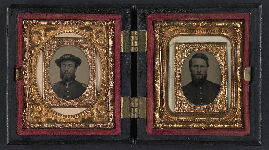Keywords: library of congress libraryofcongress dc:identifier=http://hdl.loc.gov/loc.pnp/ppmsca.27456 dc:identifier=httphdllocgovlocpnpppmsca27456 xmlns:dc=http://purl.org/dc/elements/1.1/ xmlns:dc=httppurlorgdcelements11 u.s. civil war uscivilwar american civil war americancivilwar the civil war thecivilwar civil war civilwar war between the states warbetweenthestates united states of america unitedstatesofamerica u.s.a. usa the union theunion union the north thenorth yankee yankees soldier soldiers people groupshot architecture door picture frame photo border indoor [Two unidentified soldiers in Union uniforms] [between 1861 and 1865] 2 photographs in 1 case : gem tintype, hand-colored ; 5.4 x 4.8 cm (case) Notes: Title devised by Library staff. Case: Berg, no. Berg 1-178. Gift; Tom Liljenquist; 2010; (DLC/PP-2010:105). Subjects: United States.--Army.--People--1860-1870. Soldiers--Union--1860-1870. Military uniforms--Union--1860-1870. United States--History--Civil War, 1861-1865--Military personnel--Union. Format: Portrait photographs--1860-1870. Tintypes--Hand-colored--1860-1870. Rights Info: No known restrictions on publication. Repository: Library of Congress, Prints and Photographs Division, Washington, D.C. 20540 USA, hdl.loc.gov/loc.pnp/pp.print Part Of: Ambrotype/Tintype filing series (Library of Congress) (DLC) 2010650518 Liljenquist Family collection (Library of Congress) (DLC) 2010650519 More information about this collection is available at hdl.loc.gov/loc.pnp/pp.lilj Persistent URL: hdl.loc.gov/loc.pnp/ppmsca.27456 Call Number: AMB/TIN no. 2585 [Two unidentified soldiers in Union uniforms] [between 1861 and 1865] 2 photographs in 1 case : gem tintype, hand-colored ; 5.4 x 4.8 cm (case) Notes: Title devised by Library staff. Case: Berg, no. Berg 1-178. Gift; Tom Liljenquist; 2010; (DLC/PP-2010:105). Subjects: United States.--Army.--People--1860-1870. Soldiers--Union--1860-1870. Military uniforms--Union--1860-1870. United States--History--Civil War, 1861-1865--Military personnel--Union. Format: Portrait photographs--1860-1870. Tintypes--Hand-colored--1860-1870. Rights Info: No known restrictions on publication. Repository: Library of Congress, Prints and Photographs Division, Washington, D.C. 20540 USA, hdl.loc.gov/loc.pnp/pp.print Part Of: Ambrotype/Tintype filing series (Library of Congress) (DLC) 2010650518 Liljenquist Family collection (Library of Congress) (DLC) 2010650519 More information about this collection is available at hdl.loc.gov/loc.pnp/pp.lilj Persistent URL: hdl.loc.gov/loc.pnp/ppmsca.27456 Call Number: AMB/TIN no. 2585 |