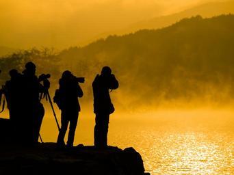Keywords: two water head silhouette lake landscape sunrise photo sky scenery sunrise water mist