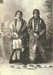 | Keywords: Two Yakama Indian women, Washington, ca 1896 (LAROCHE 100).jpeg Photograph Creator Frank La Roche Studio portrait of two Yakama women ca 1894-1899 Both women wear earrings and necklaces rings and bracelets and have blankets around their shoulders One woman holds a bag and displayed on the floor in front of them is another bag and several beaded belts They are posed in front of a painted backdrop of an arbor Caption on image Yakima squaws Subjects LCSH Portraits-Washington State ; Yakama Indians--Clothing dress; Yakama Indians--Women depicted place Washington state ca 1896 Institution University of Washington UWASH-LAROCHE-source accession number laroche 100 PD-old-auto-1923 1936 Information field Order Number LAR182 Yakama Washington state in the 1890s People of Washington state 19th-century portrait photographs of standing women at full length |