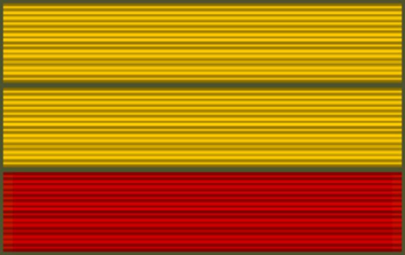 | Keywords: TwofoldGoldenAndRedLaces.png en Combat Injury Badge for wounds received in line of duty Composed of two golden and one red lace for that the bearer has been wounded thrice two severe wounds golden laces and one non-lethal wound red lace 2012-10-22 13 00 10 own George Serdechny Combat Injury Badge Red ribbons Yellow ribbons Uploaded with UploadWizard |