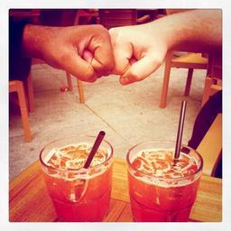 Keywords: TwoLaytons.jpg en Two mixed drinks known as 'Layton's and a fist bump in the background http //instagr am/p/K__gF/ andrewmcyntire 2011-08-22 Personal Photograph Fist bumps Proximal phalanges of the hand