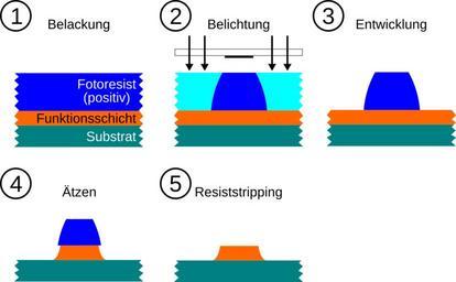 | Keywords: Ty-LithographyAndPatternTransferByEtching-de.svg Mikrostrukturierung Strukturdefinition in einer Resistmaskierung mit Foto- Lithografie und Strukturübertragung in eine Funktionsschicht mittels nicht-anisotropen Ätzens drawn by Torsten Henning 2007-12-16 15 57 55 +0100 Torsten Henning released into the public domain Inkscape Photolithography microfabrication DrTorstenHenning | ||||