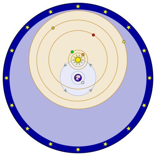 | Keywords: Tychonian system.svg Diagram depicting the basics of the Tychonian geocentric system Basically the objects on blue orbits the Moon and the Sun and the fixed stars revolve around the Earth The objects on orange orbits Mercury Venus Mars Jupiter and Saturn revolve around the Sun All is surrounded by a sphere of fixed stars though they are fixed only with respect to each other for the sphere revolves around the earth The system is essentially geocentric though everything except for the moon and the fixed stars and the earth centre itself revolves around the Sun <br /> Distances are of course just generalized though it is important that the minor planets are always tied to the Sun while the major planets can be on either side of the Earth This is a superior diagram of Tycho's system to most that you will find the path of the sun's orbit intersects with the path of Mars' orbit causing a problem for any astronomer thinking of the mechanism as incorporating nested physical spheres 2009-11-08 own User Fastfission Fastfission <br />If you want to credit someone credit Wikimedia Commons Otherwise don't credit anyone that's fine by me --Fastfission 15 03 14 April 2008 UTC History of astronomy Tycho Brahe |