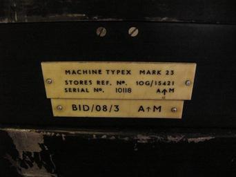 Keywords: Typex-plate.jpg A reference plate on a w Typex cipher machine on display at Bletchley Park own 2006-09 User Matt Crypto Matt Crypto Cryptography