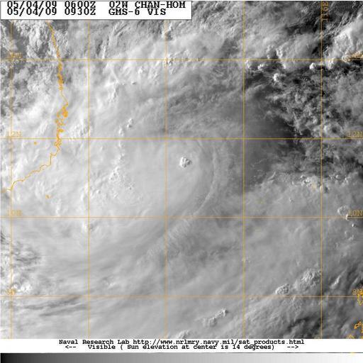 | Keywords: TYPHOON CHAN-HOM.jpg On May 2 an area of covection cloudiness associated with an area of disturbed weather formed southeast of Nha Trang Vietnam and associated with remnant of Tropical depression Crising JTWC monitored the low as Fair for developing due to low vertical wind shear and an upper level anticyclone to the east of the system Later on the JMA designated the low pressure as a minor tropical depression reporting the outlook track as southwestward The JTWC issued a TCFA on the system once the convection increased and became better organized although with an exposed LLC east of its convection Early morning of May 3 the JMA begun issuing tropical cyclone advisories on the system forecasting it to become a tropical storm later in the afternoon as it tracks eastwards On May 3 the JTWC desingated disturbance as Tropical Depression 02W as the JMA named the storm Chan-hom As the storm moved into PAGASA's area of responsibility they gave it the name Emong http //199 9 2 143/tc-bin/tc_home2 cgi ACTIVES 09-SHEM-05S BILLY 09-SHEM-94S INVEST 09-WPAC-99W INVEST SIZE Thumb PHOT yes NAV tc YR 09 ATCF_BASIN wp ATCF_YR 1 YEAR 2009 ATCF_FILE 1/ CURRENT 20090103 1457 gms6 x ir1km_bw 99WINVEST 15kts-1008mb-89N-1271E 100pc jpg AGE Latest ATCF_NAME wp991 ATCF_DIR 1 ARCHIVE active MO MAY BASIN WPAC STORM_NAME 02W CHAN-HOM STYLE tables AREA atlantic/tropics AID_DIR /data/www/pacific/western/tropics/microvap/dmsp DIR /TC/tc09/WPAC/02W CHAN-HOM/vis/geo/1km_zoom TYPE geo PROD vis SUB_PROD 1km_zoom 2009-05-04 NRL/Navy PD-USGov-Military-Navy Typhoon Chan-hom 2009 Wind shear |