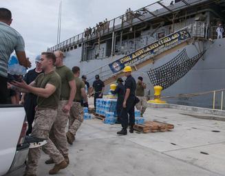 | Keywords: Typhoon Soudelor relief efforts 150806-N-ZI019-133.jpg en APRA HARBOR Guam Sailors and Marines load cases of water onto the amphibious dock landing ship USS Ashland in preparation for the ship getting underway to deploy to Saipan Ashland and embarked 31st Marine Expeditionary Unit will provide relief in the aftermath of Typhoon Soudelor which devastated the island Aug 2-3 2015-08-06 Aug 6 2015 https //www dvidshub net/image/2111298 150806-N-ZI019-133 2015-08-07 20 22 APRA HARBOR GU 4 PD-USGov-Military-Navy 31st Marine Expeditionary Unit Images from DoD uploaded by Fæ |
