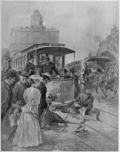 Keywords: "A Typical Cable 'Accident' on Broadway.", ca. 08-29-1895 - NARA - 513353.jpg Scope and content A horse-drawn ambulance arrives on the scene where a man lies in the street after being hit by a cable car From Leslie's Weekly Aug 29 1895 Background left Union Dime Savings Bank Background right 6th Avenue El General notes 513353 Local identifier 30-N-49-1767 Department of Commerce Bureau of Public Roads 08/20/1949 - 04/01/1967 NARA-Place New York New York state United States North and Central America inhabited place 4191644 40 7 -74 <br /> United States North and Central America nation 4199172 38 -98 <br /> Still Picture Records Section Special Media Archives Services Division NWCS-S National Archives at College Park 8601 Adelphi Road College Park MD 20740-6001 ca 1895 08 29 Record group Record Group 30 Records of the Bureau of Public Roads 1892 - 1972 Record group ARC 359 Historical Photograph File of the Bureau of Public Roads compiled 1896 - 1963 Series ARC 513325 File unit File unit ARC Variant control numbers NAIL Control Number NWDNS-30-N-49-1767<br /> Select List Identifier AMCITY 99 Other versions <gallery> File A_Typical_Cable_'Accident'_on_Broadway _ca _08-29-1895_-_NARA_-_513353 tif tif File A_Typical_Cable_'Accident'_on_Broadway _ca _08-29-1895_-_NARA_-_513353 jpg jpg </gallery> 40 44 57 N 73 59 17 W heading SW NARA-cooperation PD-USGov Streetcar lines in New York City Tram accidents Trams in art 1895 in New York City New York City in art Police officers in art Fashion in 1895 Ambulances in New York Ambulances in the 1890s Ambulances in art Herald Square Number 163 on trams Cable cars railway in the United States Horse-drawn ambulances IRT Sixth Avenue Line ImageNote 1 887 1658 556 275 2359 3000 2 163 Brodway ImageNoteEnd 1 |