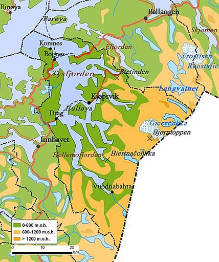 Keywords: Tysfjord map.jpg en Map of Tysfjord municipality Norway Own Jensens 2008-12-06 Maps of Nordland Tysfjord