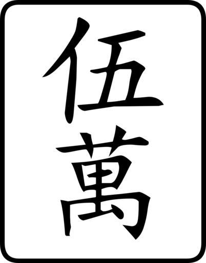 Keywords: U+1F00B MJ5wan.svg 🠋 U+1F00B MAHJONG TILE FIVE OF CHARACTERS own 13 28 12 July 2010 UTC Shizhao MJ5wan svg inkscape Unicode 1F000-1F02F Mahjong Tiles from http //savannah gnu org/projects/freefont/ free serif font GPL