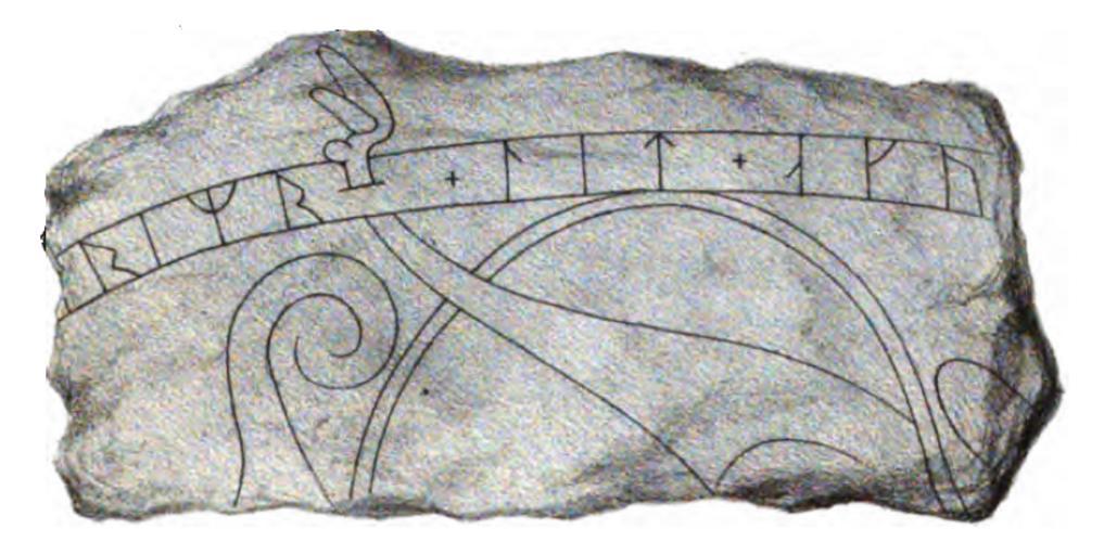 | Keywords: U 796, Sparrsätra kyrka.jpg The runestone U 796 The inscription reads + se-rimr + lit + aku -t + sun sin + afast + lifsten + iuk runi + þsa + at + kuþon trek + In English Sægrímr had this cut in memory of his son Áfastr Lífsteinn cut these runes in memory of the good valiant man Dybeck Richard 1857 Svenska run-urkunder Andra Samlingen Stockholm Joh Beckmann 1855 Richard Dybeck Author died more than 70 years ago - public domain PD-old Runestones Uppland DEFAULTSORT U0796 Runestones of Enköping Municipality |