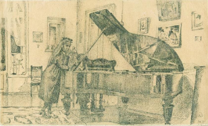 Keywords: U royalya by Mstislav Dobuzhinsky (1914).jpg «У ояля» 1914 г бумага уголь Выставка «Семейный альбом» стислав Добужинский Гале ея на Ленивке 1914 стислав Добужинский PD-RusEmpire Mstislav Dobuzhinsky Files uploaded by Shakko from various sources Pianos in art |