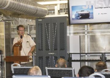 | Keywords: U.S. Ambassador to Honduras James D. Nealon delivers remarks to U.S. and Honduran government and military officials during a tour of the joint high speed vessel USNS Spearhead (JHSV 1) in Puerto Castilla 140901-N-QY430-154.jpg  en U S Ambassador to Honduras James D Nealon delivers remarks to U S and Honduran government and military officials during a tour of the joint high speed vessel USNS Spearhead JHSV 1 in Puerto Castilla Honduras Sept 1 2014 as part of Southern Partnership Station SPS 2014 SPS is an annual deployment of U S ships to the U S Southern Command's area of responsibility in the Caribbean and Latin America The exercise involves information sharing with navies coast guards and civilian services throughout the region 2014-09-01 MC1 Rafael Martie http //www defenseimagery mil/imageRetrieve action guid a4f9e1c2fe5240f472680d468b59c53427621d51 t 2 Public domain photograph from defenseimagery mil http //www defenseimagery mil/imagery html guid a4f9e1c2fe5240f472680d468b59c53427621d51 140901-N-QY430-154 2014-09-04 Puerto Castilla PD-USGov-Military-Navy USNS Spearhead JHSV-1 Southern Partnership Station 2014 Images from DoD uploaded by Fæ James D Nealon |
