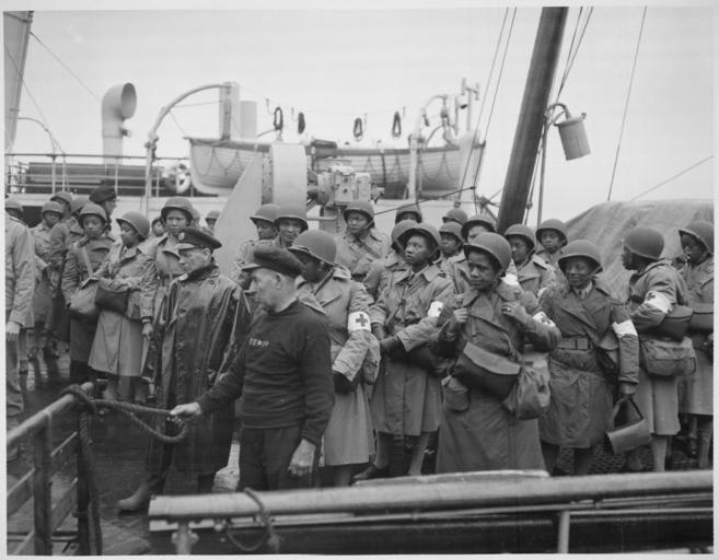 | Keywords: nara:arcid=531204 national archives nationalarchives women nurses wartime wwii african-american africanamerican greenock scotland army uniform helmet world war two worldwartwo world war ii worldwarii united states army unitedstatesarmy us army usarmy blackandwhite monochrome black and white Original Caption: "U.S. Army nurses, newly arrived, line the rail of their vessel as it pulls into port of Greenock, Scotland, in European Theater of Operations. They wait to disembark as the gangplank is lowered to the dock.", 08/15/1944 U.S. National Archives’ Local Identifier:111-SC-192605-S From:Series: Signal Corps Photographs of American Military Activity, compiled 1754 - 1954 Created By:Department of Defense. Department of the Army. Office of the Chief Signal Officer. (09/18/1947 - 02/28/1964) Production Date: 08/15/1944 Persistent URL: arcweb.archives.gov/arc/action/ExternalIdSearch?id=531204 Repository: NARA's Still Picture Records Section, National Archives at College Park (College Park, MD) Access Restrictions: Unrestricted Use Restrictions: Unrestricted Original Caption: "U.S. Army nurses, newly arrived, line the rail of their vessel as it pulls into port of Greenock, Scotland, in European Theater of Operations. They wait to disembark as the gangplank is lowered to the dock.", 08/15/1944 U.S. National Archives’ Local Identifier:111-SC-192605-S From:Series: Signal Corps Photographs of American Military Activity, compiled 1754 - 1954 Created By:Department of Defense. Department of the Army. Office of the Chief Signal Officer. (09/18/1947 - 02/28/1964) Production Date: 08/15/1944 Persistent URL: arcweb.archives.gov/arc/action/ExternalIdSearch?id=531204 Repository: NARA's Still Picture Records Section, National Archives at College Park (College Park, MD) Access Restrictions: Unrestricted Use Restrictions: Unrestricted |