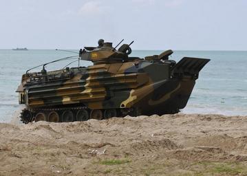 Keywords: U.S., international forces conduct Cobra Gold exercise DVIDS249415.jpg en A Korean amphibious assault vehicle moves onto the beach during a simulated amphibious assault as part of exercise Cobra Gold 2010 The assault included Marines aircraft and landing crafts from the forward-deployed amphibious assault ship USS Essex the amphibious transport dock ship USS Denver and the dock landing ship USS Harper's Ferry CG 10 is a U S -Thai sponsored multinational exercise designed to enhance interoperability between U S and Pacific partner nations Essex is part of the forward-deployed Essex Amphibious Ready Group and is conducting spring patrol The Essex ARG is comprised of Amphibious Squadron Eleven Essex amphibious transport dock ship USS Denver dock landing ship USS Harpers Ferry and guided-missile cruiser USS Shiloh The Essex ARG has the 31st Marine Expeditionary Unit embarked and this group reports to Commander Amphibious Force Seventh Fleet Rear Adm Richard Landolt who is headquartered in Okinawa Japan 2010-02-04 https //www dvidshub net/image/249415 100204-N-+++++-574 2010-02-09 13 43 HAT YAO TH PD-USGov-Military-Navy 31st Marine Expeditionary Unit USS Essex LHD-2 USS Shiloh CG-67 Images from DoD uploaded by Fæ Amphibious Assault Vehicle in South Korea service |