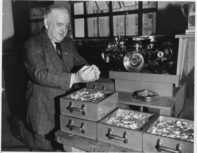 Keywords: U.S. Mint at Frisco Makes Coins for China - NARA - 296602.jpg Scope and content For two months employees of the San Francisco Federal Mint worked behind the bullet-proof enclosuresmaking more than 10 million coins for the Chinese government After the mint in Shanghai closed the Chinese sent 150 tons of silver and copper alloys to San Francisco so that the money could be made More than 3 000 000 dollars and twice as many half-dollars were ordered The photograph shows Peter J Haggerty Superintendent of the Mint looking over part of the production of Chinese coins General notes 296602 Local identifier Department of the Treasury Bureau of the Mint U S Mint San Francisco California 1873 - 07/11/1962 NARA's Pacific Region San Bruno NRHAS 1000 Commodore Drive San Bruno CA 94066-2350 1998-06-25 Record group Record Group 104 Records of the U S Mint 1792 - 2007 Record group ARC 433 Photographs of Mint Operations compiled ca 1885 - ca 1938 Series ARC 296601 File unit File unit ARC Variant control numbers NAIL Control Number NRHS-104-SFMNTMINTOPS-SF454319 Other versions <gallery> File U S _Mint_at_Frisco_Makes_Coins_for_China_-_NARA_-_296602 tif tif File U S _Mint_at_Frisco_Makes_Coins_for_China_-_NARA_-_296602 jpg jpg </gallery> NARA-cooperation PD-USGov Coins of China New United States Mint San Francisco |