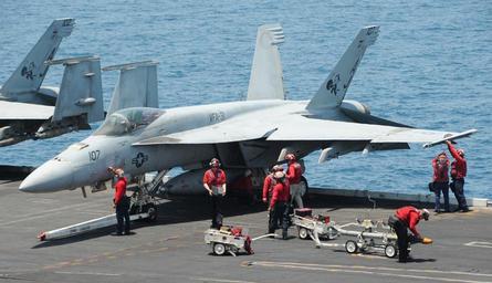 | Keywords: U.S. Sailors conduct maintenance on an F-A-18E Super Hornet aircraft assigned to Strike Fighter Squadron (VFA) 31 aboard the aircraft carrier USS George H.W. Bush (CVN 77) in the Persian Gulf July 1, 2014 140701-N-MU440-055.jpg en U S Sailors conduct maintenance on an F/A-18E Super Hornet aircraft assigned to Strike Fighter Squadron VFA 31 aboard the aircraft carrier USS George H W Bush CVN 77 in the Persian Gulf July 1 2014 The George H W Bush supported maritime security operations and theater security cooperation efforts in the U S 5th Fleet area of responsibility 2014-07-01 MC3 Lorelei Vander Griend http //www defenseimagery mil/imageRetrieve action guid a349fd33f55f1dee202df0ba707e40956714655c t 2 Public domain photograph from defenseimagery mil http //www defenseimagery mil/imagery html guid a349fd33f55f1dee202df0ba707e40956714655c 140701-N-MU440-055 2014-07-02 USS George H W Bush CVN 77 PD-USGov-Military-Navy F/A-18E Super Hornet on flight decks USS George H W Bush CVN-77 Images from DoD uploaded by Fæ |