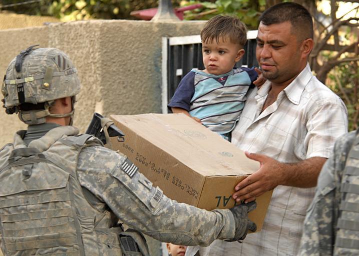 | Keywords: U.S. Soldiers, Working Dogs Search for Weapons Cache DVIDS118646.jpg en A U S Soldier gives a box of Halal food to an Iraqi man and his child Iraqi national police and U S Soldiers from 3rd Infantry Division 4th Brigade 64th Cavalry searched for weapons cache in Risalah Baghdad on Sept 26 2008 2008-09-26 Petty Officer 2nd Class Joan Kretschmer https //www dvidshub net/image/118646 080926-N-+++++-061 2008-09-28 10 32 RISALAH IQ PD-USGov-Military-Navy 3rd Infantry Division United States Images from DoD uploaded by Fæ |