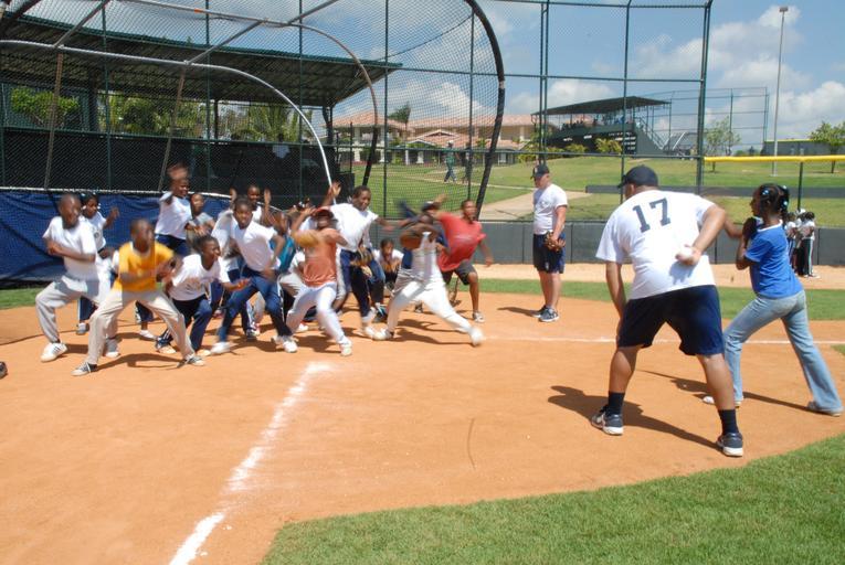Keywords: U.S. Southern Command Holds Baseball Clinic DVIDS167077.jpg en U S Southern Command Friendship Baseball Tour team catchers Army Sgt 1st Class Edgar Burgos No 17 and Air Force Staff Sgt Brain Chesshir left drill little league children on performing the three basic steps taught at the baseball clinic held at the San Diego Padres Training Facility The baseball team representing joint service personnel assigned to U S SOUTHCOM is on a friendship tour scheduled to travel to five Latin American nations engaging military and civilian teams in a game of baseball The team is conducting baseball clinics at local communities for children throughout South Central America and Caribbean countries strengthening ties through a shared interest in baseball 2009-04-17 Petty Officer 1st Class Gino Flores https //www dvidshub net/image/167077 090417-N-+++++-053 2009-04-22 15 04 NAJAYO DO PD-USGov-Military-Navy San Diego Padres Images from DoD uploaded by Fæ |