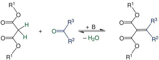 Keywords: Übersicht Knoevenagel-Reaktion V1.svg Structure of Struktur von Own 2012-08-08 Eva1900 <span class signature-talk >talk</span> PD-chem Knoevenagel condensation Cc-zero