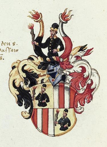 Keywords: UBHD Cod Sal IX 58 039v Prandter.jpg Wappen aus dem Wappenbuch des Hofpfalzgrafen Franz Rasso Gotthardt Entstanden in Süddeutschland Passau Universitätsbibliothek Heidelberg Cod Sal IX 58 <br />Wappen Hanns Prandter Bürger und Gastgeb zu Passau bewilligt 8 April 1598 http //digi ub uni-heidelberg de/diglit/salIX58 after 1597 1623 “1631 Franz Rasso Gotthardt PD-old-100 Wappenbuch der Hofpfalzgrafen Coats of arms of families of Germany - P Prandter Torches in heraldry Men in crest Fire in crest Men in heraldry Bull horns in crest Argent gules Or sable in heraldry Quarterly shields Paly of 4 gules and argent Paly of 4 argent and gules