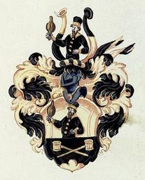 Keywords: UBHD Cod Sal IX 58 047r Wöckhl.jpg Wappen aus dem Wappenbuch des Hofpfalzgrafen Franz Rasso Gotthardt Entstanden in Süddeutschland Passau Universitätsbibliothek Heidelberg Cod Sal IX 58 <br />Wappen Hans Wöckhl Bürger und Bierbrauer zu Straubing bewilligt 15 April 1598; Wappenfiguren wohl Mann mit Wecken zwei Schöpfkellen http //digi ub uni-heidelberg de/diglit/salIX58 after 1597 1623 “1631 Franz Rasso Gotthardt PD-old-100 Wappenbuch der Hofpfalzgrafen Coats of arms of families of Germany - W Wockhl Men in heraldry Triple mountains Or Party per fess Or and sable Men in crest Bull horns in crest Tools in heraldry People of Straubing Bread in heraldry |