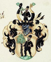 Keywords: UBHD Cod Sal IX 58 034r Lindtner.jpg Wappen aus dem Wappenbuch des Hofpfalzgrafen Franz Rasso Gotthardt Entstanden in Süddeutschland Passau Universitätsbibliothek Heidelberg Cod Sal IX 58 <br />Wappen Hanns Lindtner Bürger und Lebzelter zu Passau bewilligt 5 April 1598 http //digi ub uni-heidelberg de/diglit/salIX58 after 1598 1623 “1631 Franz Rasso Gotthardt PD-old-100 Wappenbuch der Hofpfalzgrafen Coats of arms of families of Germany - L Lindtner Triple mountains vert Tilia trees in heraldry Men in heraldry Men in crest Bull horns in crest Tilia leaves in crest Or sable vert in heraldry Coats of arms from Passau |