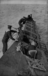 | Keywords: UC5 captured.jpg The German Imperial Navy submarine UC 5 during its capture in 1916 UC 5 was a German Type UC I U-boat and commissioned on 19 June 1915 at Hamburg She served in the First World War under the command of Herbert Pustkuchen June 1915 - December 1915 and Ulrich Mohrbutter December 1915 - April 1916 She ran aground on Shipwash Shoal while on patrol on 27 April 1916 51°59 ²N 1°38 ²E and was scuttled but the charges failed to explode Her crew were captured by the British destroyer HMS Firedrake British sailors and officers boarding the captured UC-5 German mine-laying submarine The open grating shows one of the openings through which the mines are laid J Reynolds Allen L Churchill Francis Trevelyan Miller eds The Story of the Great War Volume V New York Specified year 1916 actual year more likely 1917 or 1918 Retreived from https //archive org/stream/storyofgreatwarh05churuoft page/n476/mode/1up 1916-04 <sup>http //www navsource org/archives/08/08465 htm NY newspaper</sup> Central News Photo Service PD-USGov frame removed SM UC 5 submarine 1915 191604 |
