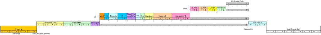 Keywords: UDP IP Ethernet.jpg en UDP IP Ethernet Frame format own Arkrishna 2008-11-26 Ethernet IEEE 802 Data packet diagrams User Datagram Protocol
