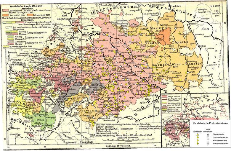Keywords: Uebersicht Postmeilensaeulen.jpg à bersichtskarte der Kursächsischen Postmeilensäulen selbst erstellt; basiert auf de Bild Kurkreis jpg Karte der sächsischen Kreise Aus dem historischen Schulatlas 44 Ausgabe 1925 erschienen im Verlag Velhagen Klasing herausgegeben von Alfred Balsamus Ernst Schwabe und Ernst Ambrosius Hochgeladen am 19 Oktober 2005 von Torsten Schleese Laut Bildtext Torsten Schleese žpublic domain 2006-08-08 Peer-Cedric Hänsel elsaxo PD-old Uebersicht Postmeilensaeulen svg Old maps of the Holy Roman Empire Old maps of Saxony |
