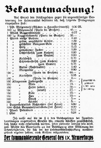 Keywords: Uetersen Bekanntmachung Lebensmittelpreise 1914.jpg de Bekanntmachung der Lebensmittelpreise in den Uetersener Nachrichten 1914 eigene reproduktion das Original mehr als 70 Jahre alt own reproduktion original is more than 70 years old Author 1914 Germany in World War I Documents of Uetersen World War I PD-old |