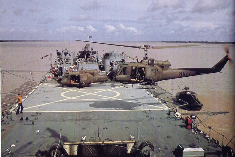 | Keywords: UH-1E HAL-4 LST-821 Oct1967.jpg  A Bell UH-1E Huey helicopter of U S Navy light helicopter attack squadron HAL-3 Seawolves landing on the converted tank landing ship USS Harnett County LST-821 between combat operations in the Mekong Delta Co Chien river South Vietnam in October 1967 A U S Army UH-1B is parked in the background Scan from Dana Bell Air War over Vietnam Volume IV Arms and Armour Press London Harrisburg PA 1984 ISBN 0853686351 p 36 Cites U S Navy as source 1967-10 USN PD-USGov Bell UH-1 Iroquois in the Vietnam War United States Army aviation in the Vietnam War United States Navy in the Vietnam War LST-821 Harnett County ship 1944 Helicopter Attack Squadron Light 3 United States Navy |