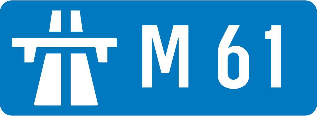 Keywords: UK-Motorway-M61.svg Motorway badge for the M61 motorway Own 2007-05-06 User Max Naylor British motorway plaques 61 number