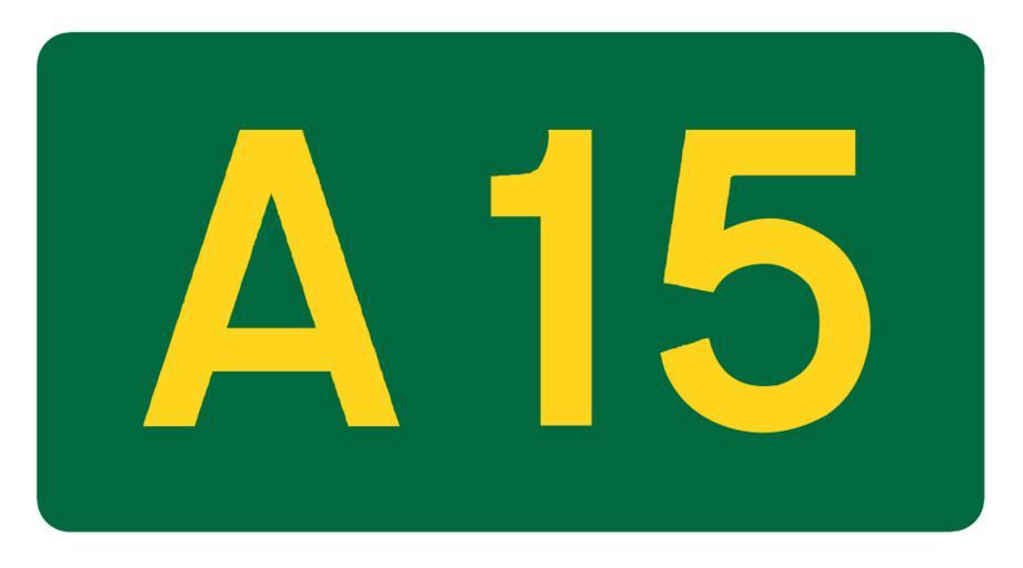 Keywords: UK road A15.svg en A15 own Mauls date Diagrams of route signs of the United Kingdom 15 number A15 road England