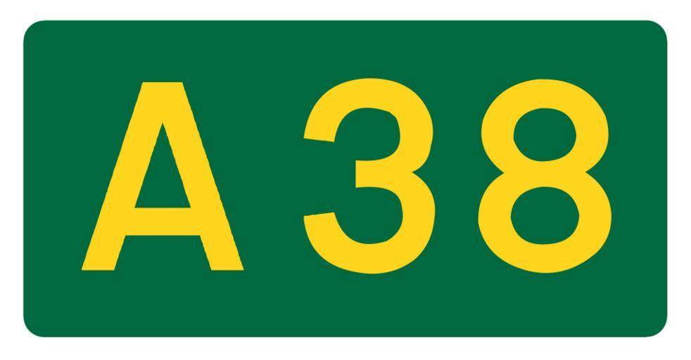 Keywords: UK road A38.svg en UK road number patch own Mauls Diagrams of route signs of the United Kingdom 0038 38 number A38 road England