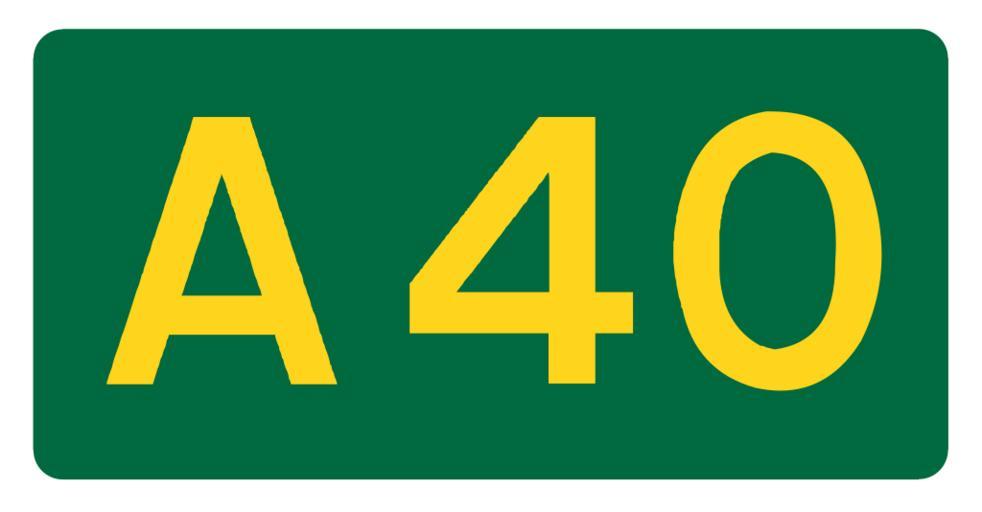 Keywords: UK road A40.svg en A40 own Mauls Diagrams of route signs of the United Kingdom 40 number