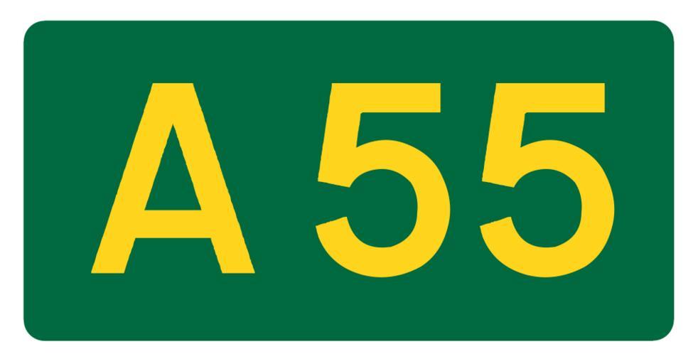 Keywords: UK road A55.svg en Uk road number patch own Mauls Diagrams of route signs of the United Kingdom 55 number