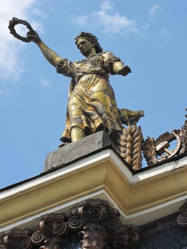Keywords: ukraine soviet ussr statue sculpture monument building artwork golden shimmer historic architecture