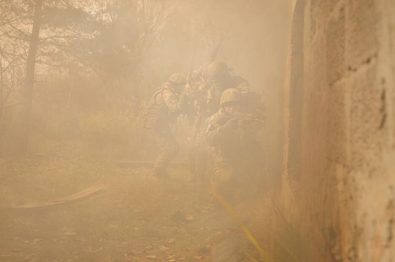 Keywords: texture monochrome YAVORIV, Ukraine—Ukrainian Soldiers assigned to 1st Battalion, 80th Airmobile Brigade take cover in smoke before entering a simulated enemy building, Nov. 5, during a training exercise taught by Soldiers assigned to 6th Squadron, 8th Cavalry Regiment, 2nd Infantry Brigade Combat Team, 3rd Infantry Division at the International Peacekeeping and Security Center. This training is one of the collective tasks that the Ukrainian battalion must accomplish during their 55-day rotation with the Joint Multinational Training Group-Ukraine. JMTG-U’s focus is to build a sustainable, enduring training capacity and capability within Ukrainian’s Armed Forces. (Army photo by Sgt. Jacob Holmes) YAVORIV, Ukraine—Ukrainian Soldiers assigned to 1st Battalion, 80th Airmobile Brigade take cover in smoke before entering a simulated enemy building, Nov. 5, during a training exercise taught by Soldiers assigned to 6th Squadron, 8th Cavalry Regiment, 2nd Infantry Brigade Combat Team, 3rd Infantry Division at the International Peacekeeping and Security Center. This training is one of the collective tasks that the Ukrainian battalion must accomplish during their 55-day rotation with the Joint Multinational Training Group-Ukraine. JMTG-U’s focus is to build a sustainable, enduring training capacity and capability within Ukrainian’s Armed Forces. (Army photo by Sgt. Jacob Holmes) |